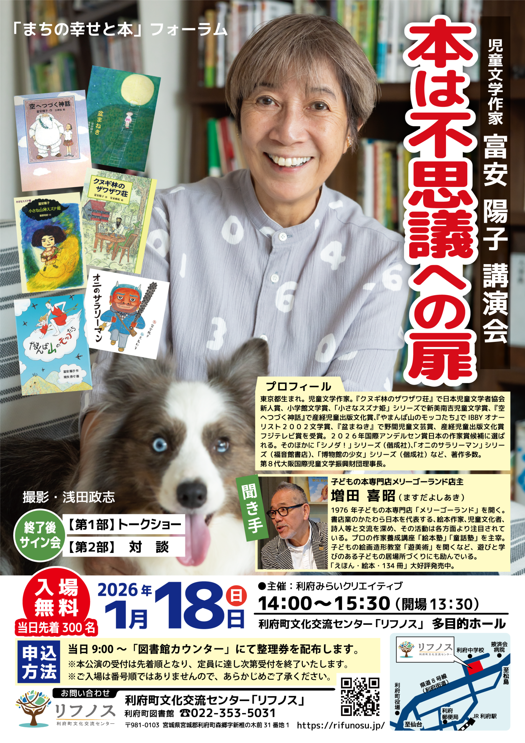 2026/1/18(日)開催 児童文学作家 富安陽子 講演会 「本は不思議への扉」