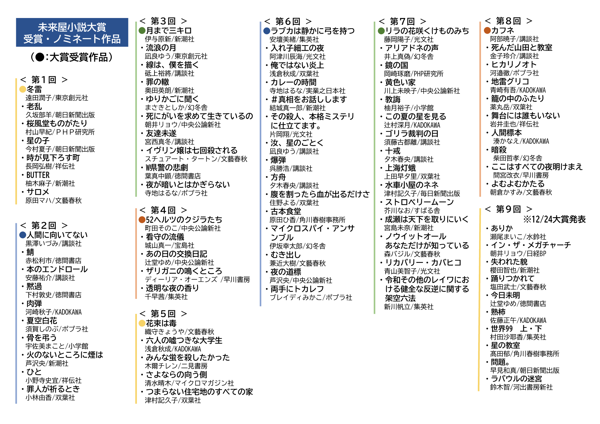 歴代の「未来屋小説大賞」受賞・ノミネート作品
