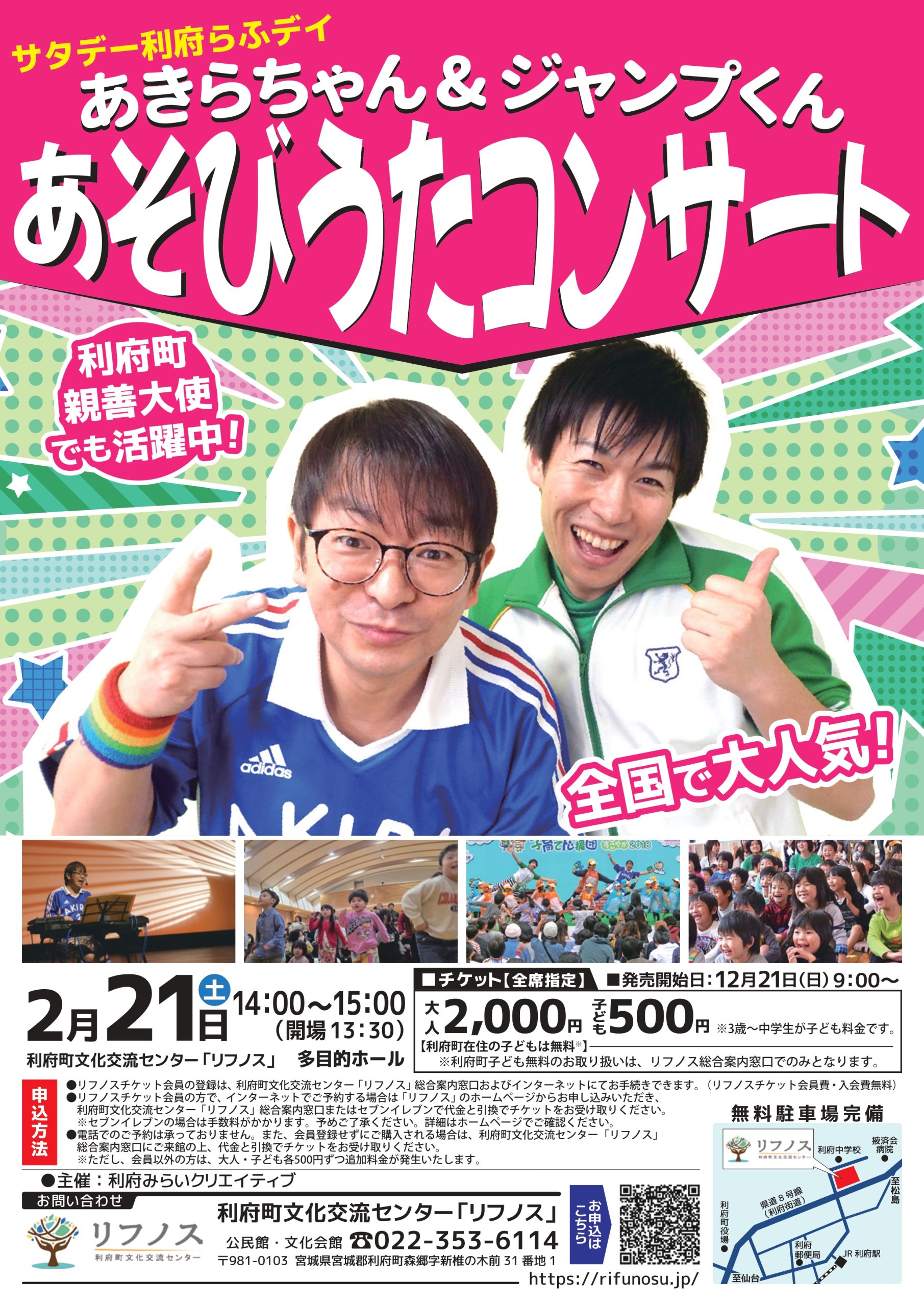 【2026年2月21日(土)開催】あきらちゃん&ジャンプくん あそびうたコンサート