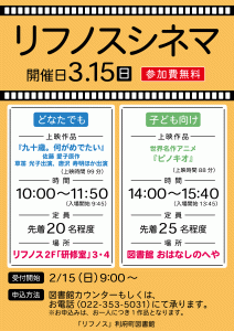3/15(日)開催 リフノスシネマ【申込開始:2/15(日)】