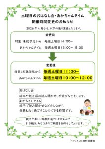 【図書館】土曜日の『おはなし会』『あかちゃんタイム』 時間変更のお知らせ